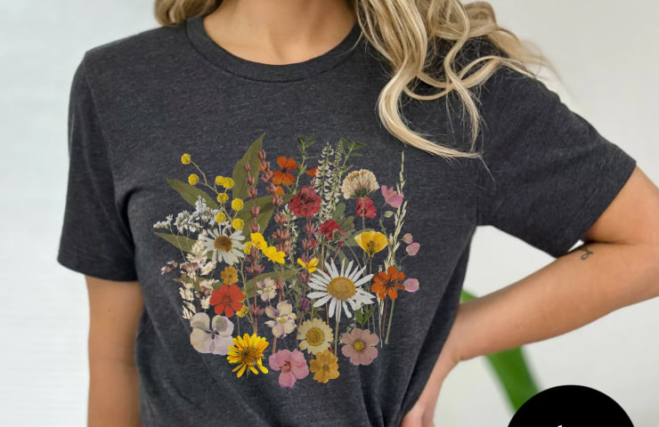 Vintage T-Shirt Pressed Flowers Shirt Aesthetic Boho Floral